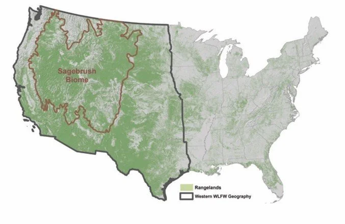 While it may not look like much, the Sagebrush Sea, covers about one-third of the land mass of the contiguous United States. This includes eastern Washington, Oregon, and California, Montana, Wyoming, Colorado, Utah, and Nevada as well as most of Idaho, the northern parts of Arizona, New Mexico, and Texas, and the western edges of North Dakota, South Dakota, and Nebraska. This biome also stretches up north to the Canadian provinces of Manitoba, Alberta, and Saskatchewan. The Sagebrush Sea serves as habitat for over 350 species, and it is crucial for regulating the environment in the West. The sagebrush habitat is home to pygmy rabbits, burrowing owls, bison, elk, mule deer, pronghorn, sage grouse, and countless other iconic species synonymous with the American West. Countless plant and animal species have evolved to rely on each other including species of plants that have evolved to live under and amongst the sagebrush.